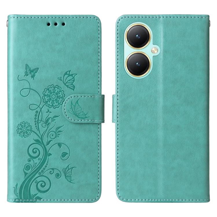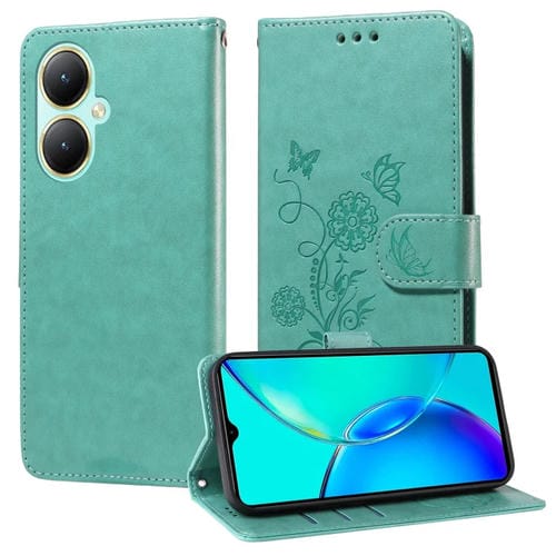 Funda de Cuero con Diseño de Mariposas y Flores En Relieve para Vivo Y35M+ / Y35+ / Y27 4G (Verde)