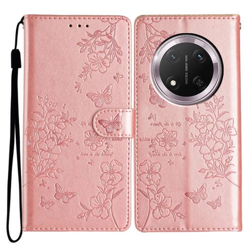 Funda de Cuero para Honor X9C con Mariposas y Flores (Oro Rosa)