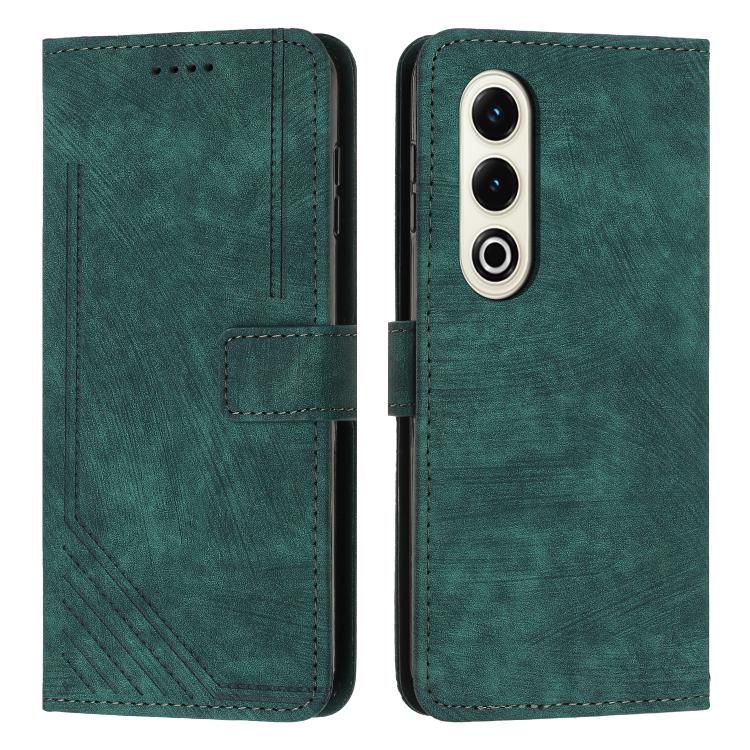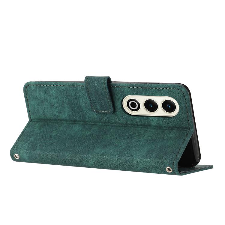 Funda de Cuero Itel S25 con Diseño de Rayas y Cordón (Verde)