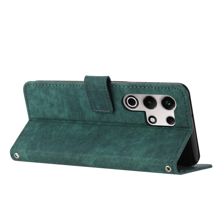 Funda de Cuero para Itel S25 Ultra con Diseño de Rayas y Cordón (Verde)