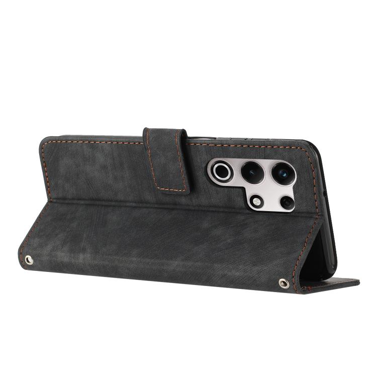 Funda de Cuero Itel S25 Ultra Diseño de Rayas Tacto Piel (Negro)