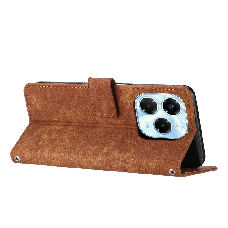 Funda de Cuero para Infinix Note 40X 5G con Diseño de Rayas y Tacto Sedoso (Marrón)