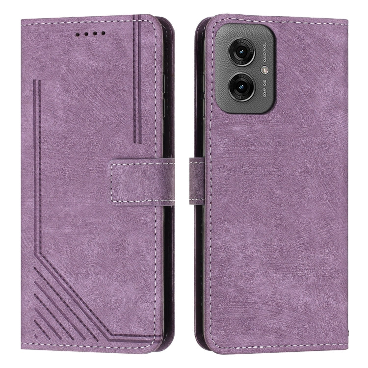 Funda de Cuero Motorola Moto G55 con Diseño de Rayas y Tacto Sedoso (Morado)