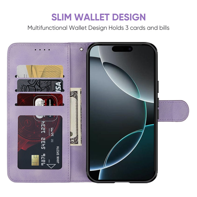 Funda de Cuero para iPhone 16 Pro Diseño Geométrico Líneas de Tacto Suave (Morado)