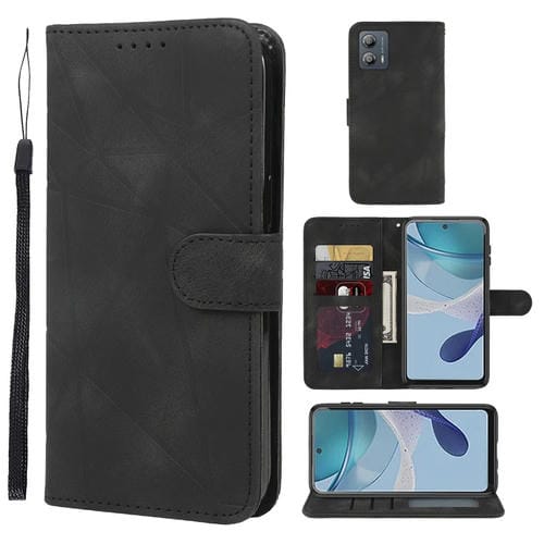 Funda de Cuero para Motorola Moto G53 con Diseño Geométrico y Líneas (Negro)
