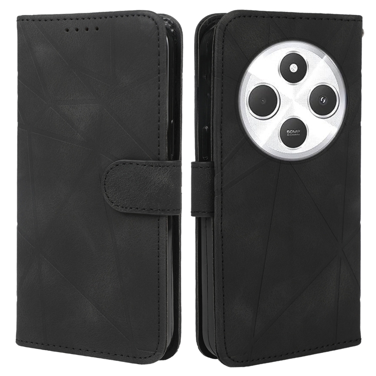 Funda de Cuero con Diseño Geométrico y Líneas para Redmi 14C 4G (Negra)