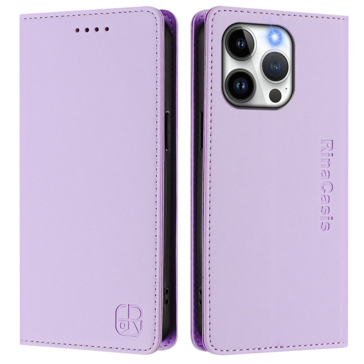 Funda de Cuero Rc01 para iPhone 14 Pro Max con Doble Pliegue y Succión Magnética (Morado Claro)