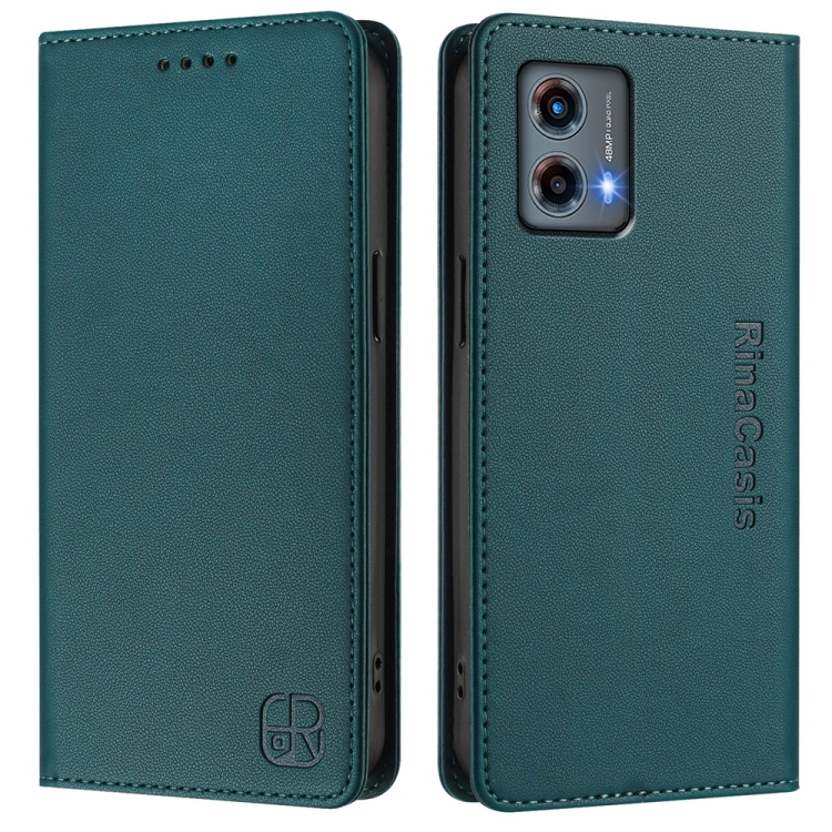 Funda de Cuero con Doble Pliegue y Succión Magnética para Motorola Moto G 5G 2023 Rc01 (Verde Oscuro)