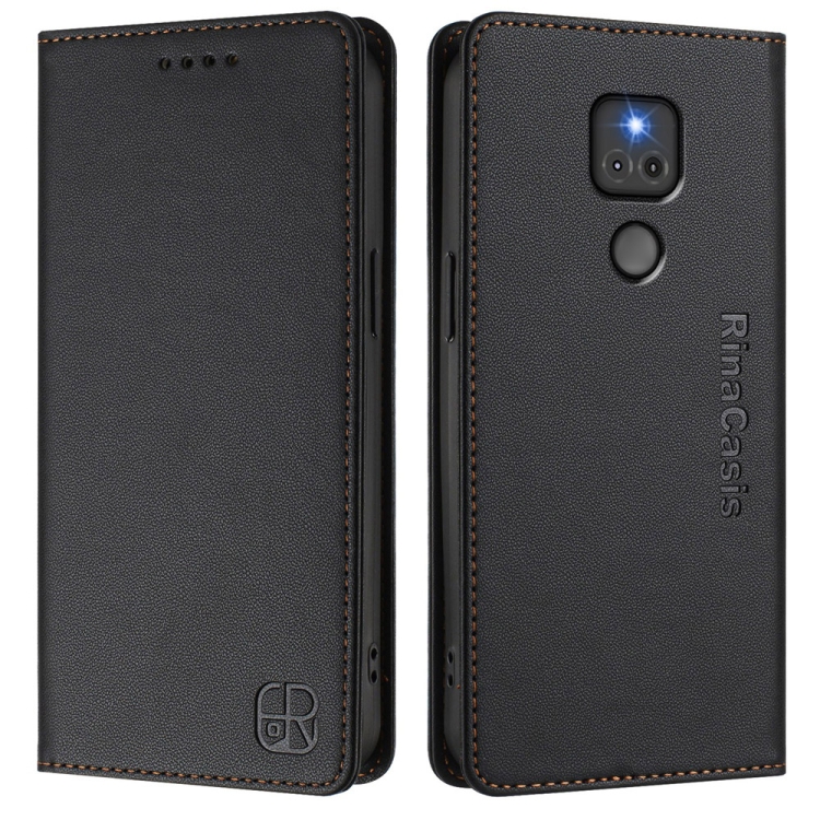 Funda de Cuero con Doble Pliegue y Succión Magnética para Motorola Moto G Play 2021 Rc01 (Negra)