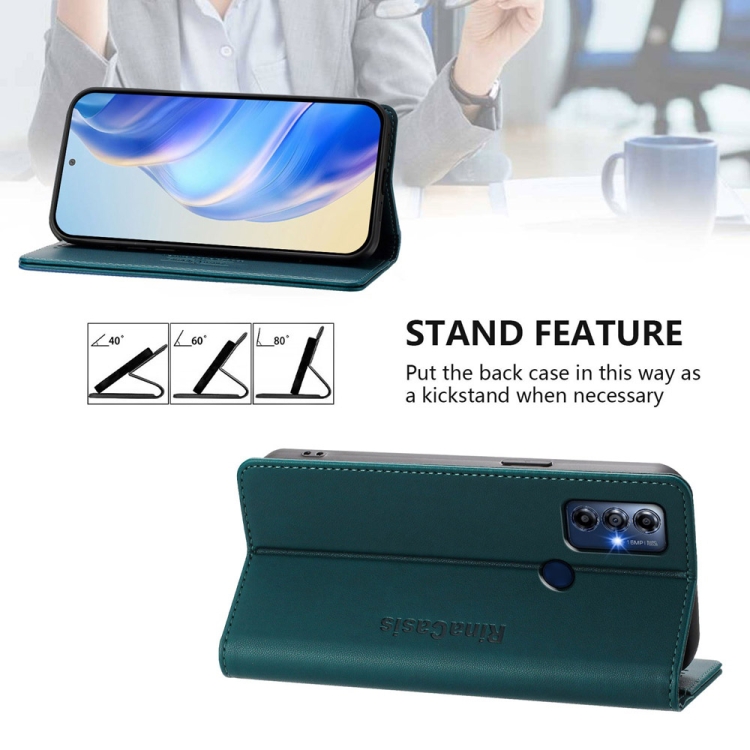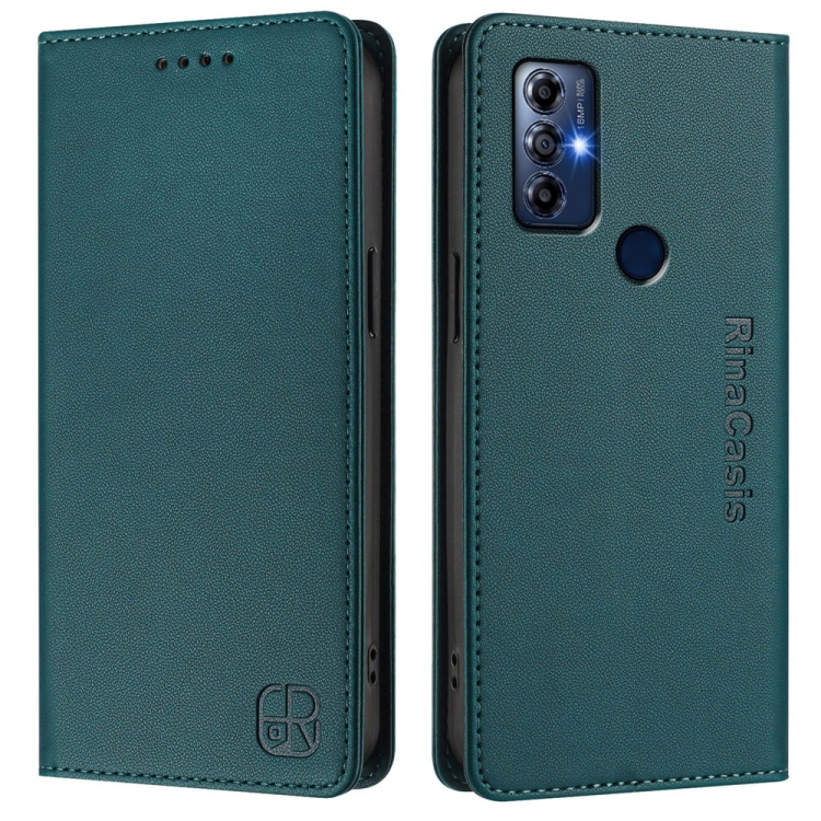 Funda de Cuero con Doble Pliegue y Succión Magnética para Motorola Moto G Play 2022 Rc01 (Verde Oscuro)