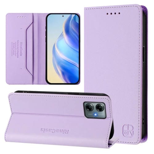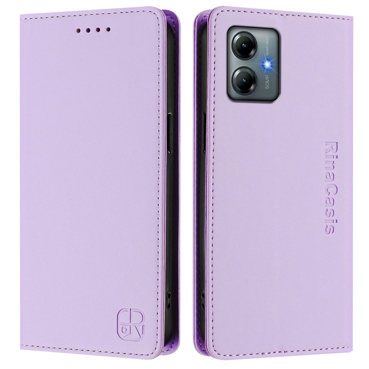 Funda de Cuero con Doble Pliegue y Succión Magnética para Motorola Moto G Play 2025/G Power 2025 Rc01 (Morado Claro)