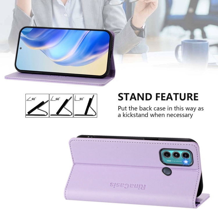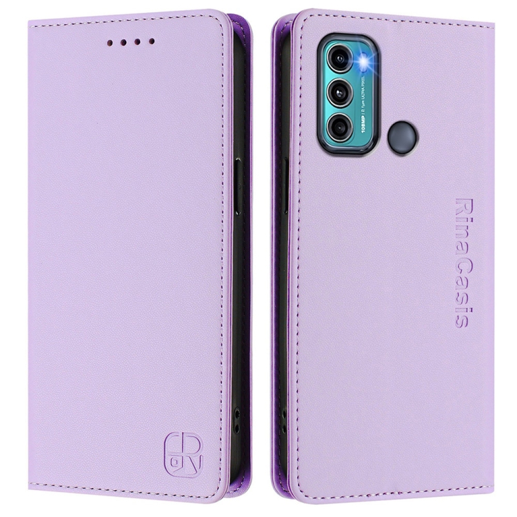 Funda de Cuero Motorola Moto G60/G40 Fusion Rc01 con Doble Pliegue y Succión Magnética (Morado Claro)