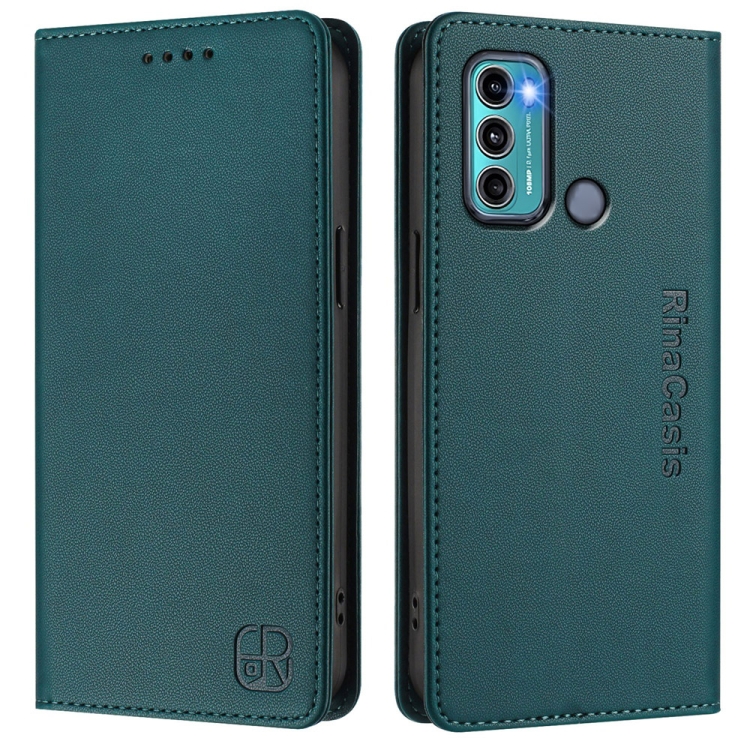 Funda de Cuero Motorola Moto G60 G40 Fusion Rc01 con Doble Pliegue y Succión Magnética (Verde Oscuro)