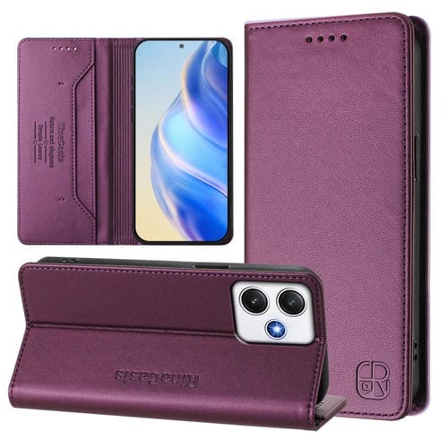 Funda de Cuero con Doble Pliegue y Succión Magnética para Redmi 12 5G/4G Global/Note 12R Rc01 (Violeta)