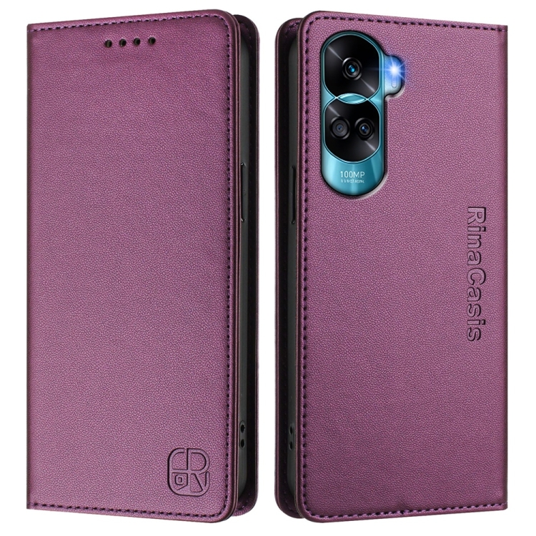 Funda de Cuero con Doble Pliegue y Succión Magnética Rfid para Honor 90 Lite / Honor X50I Rc01 (Violeta)