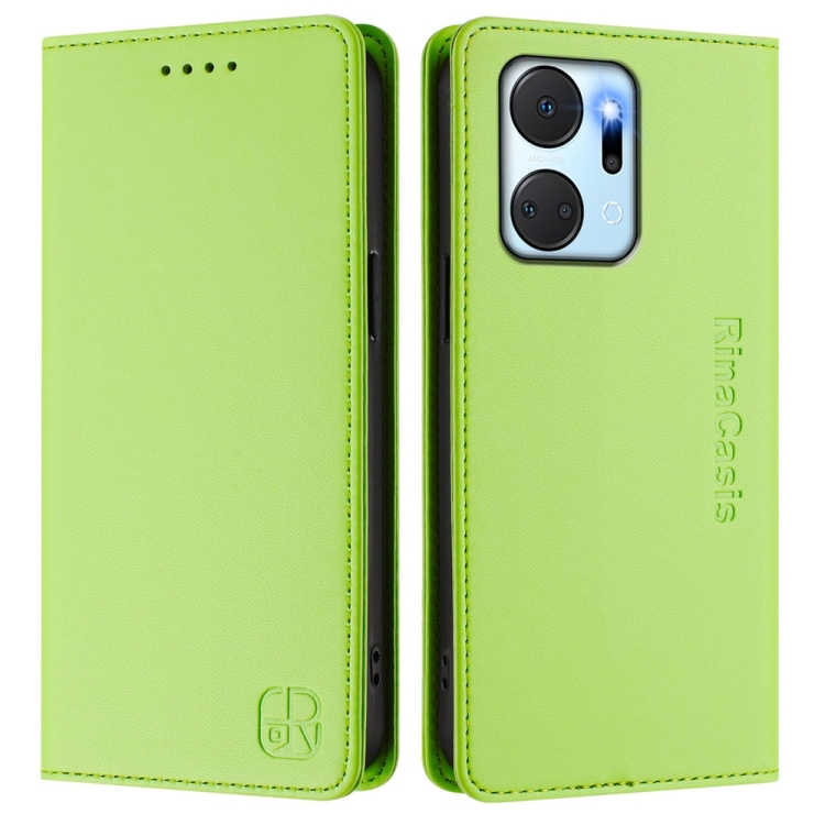 Funda de Cuero con Doble Pliegue y Succión Magnética Rfid para Honor X7A y Play7T Rc01 (Verde Hierba)