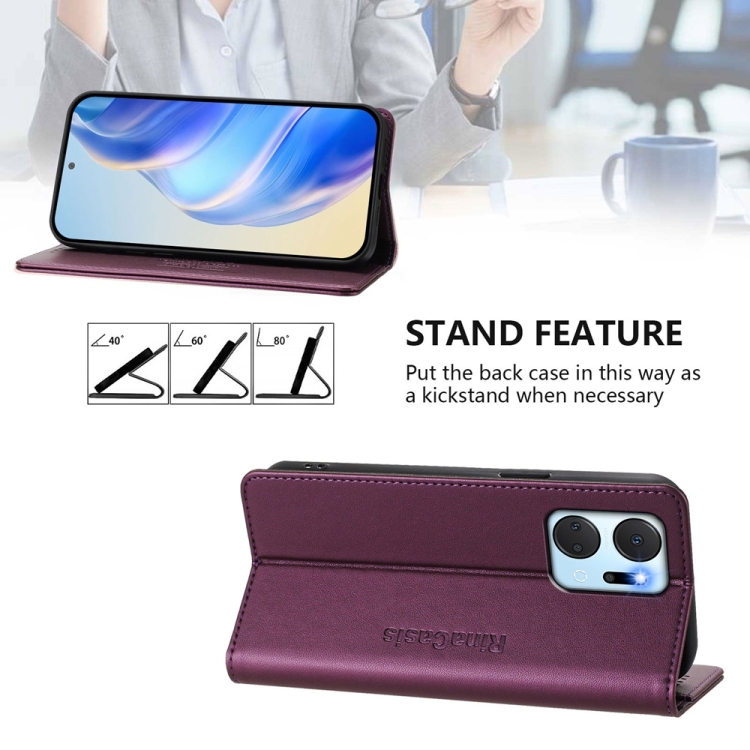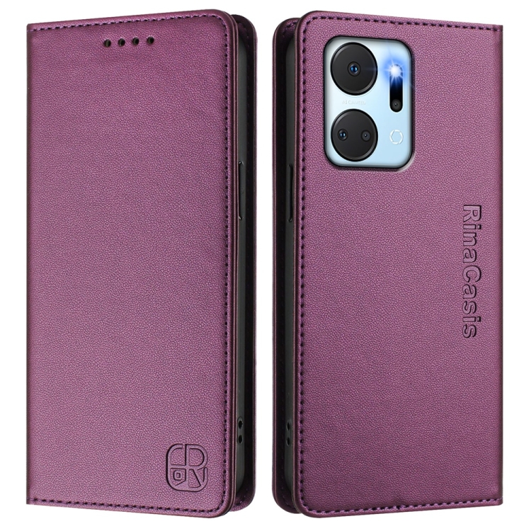Funda de Cuero con Doble Pliegue y Succión Magnética Rfid para Honor X7A y Play7T Rc01 (Violeta)