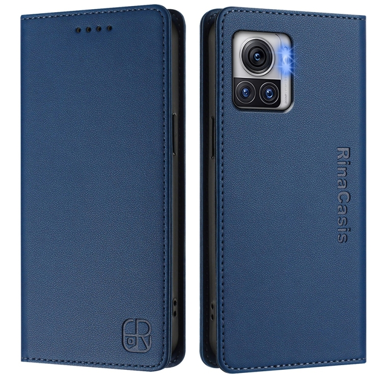 Funda de Cuero con Doble Pliegue y Succión Magnética para Motorola Moto X30 Pro / Edge 30 Ultra Rc01 (Azul Oscuro)