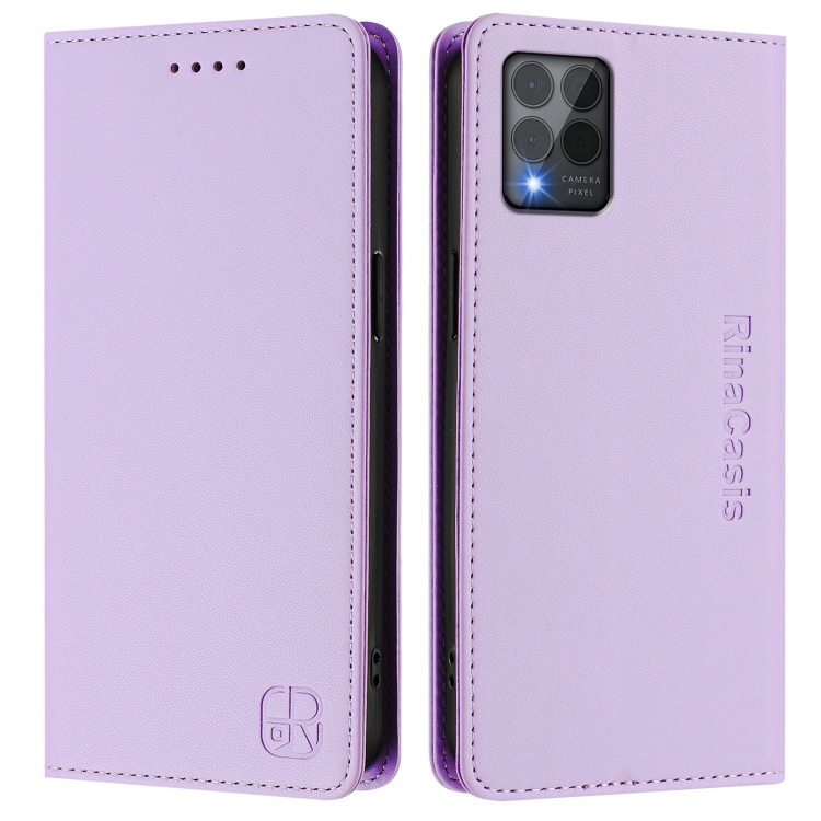 Funda de Cuero con Doble Pliegue y Succión Magnética para T-Mobile Revvl 6 Pro/6X Pro 5G Rc01 (Morado Claro)