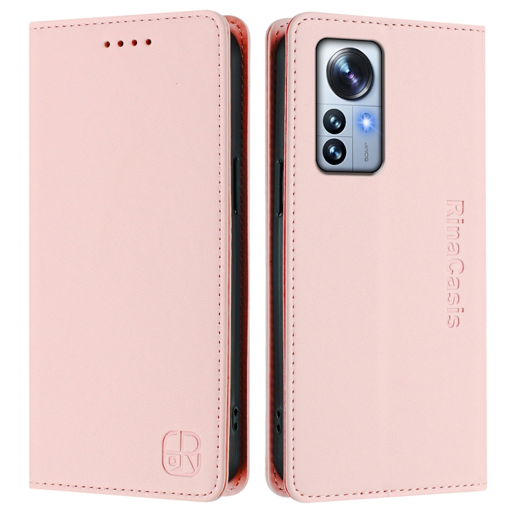 Funda de Cuero con Doble Pliegue y Succión Magnética para Teléfono Xiaomi 12 Pro/12S Pro Rc01 (Rosa)