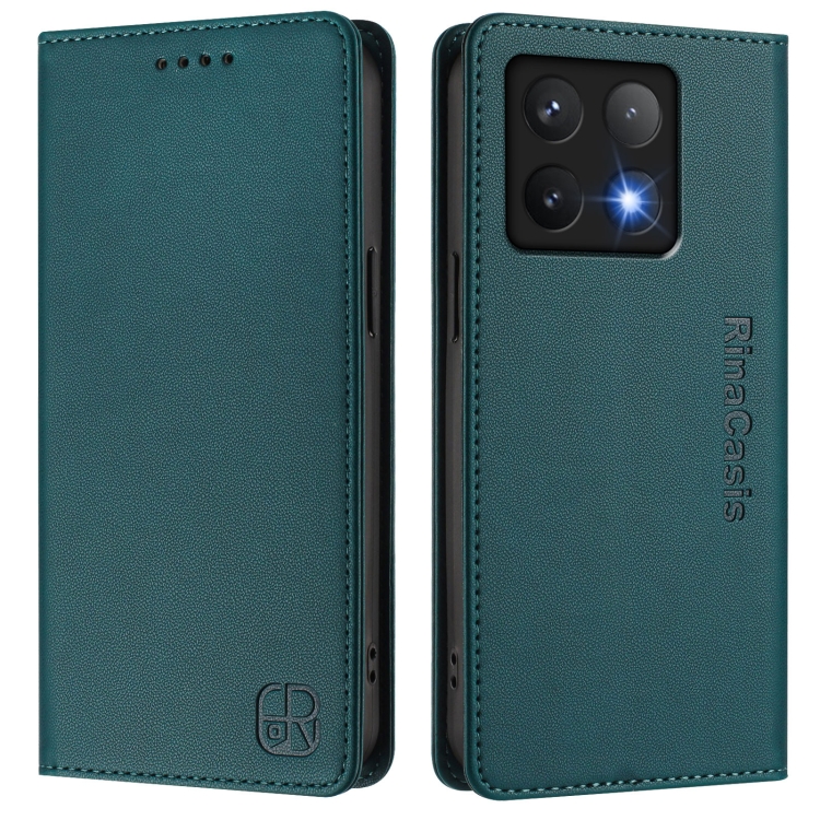 Funda De Cuero Con Doble Pliegue Y Succión Magnética Para Teléfono Xiaomi 14T Pro Rc01 (Verde Oscuro)