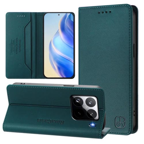 Funda De Cuero Con Doble Pliegue Y Succión Magnética Para Teléfono Xiaomi 15 Pro Rc01 (Verde Oscuro)
