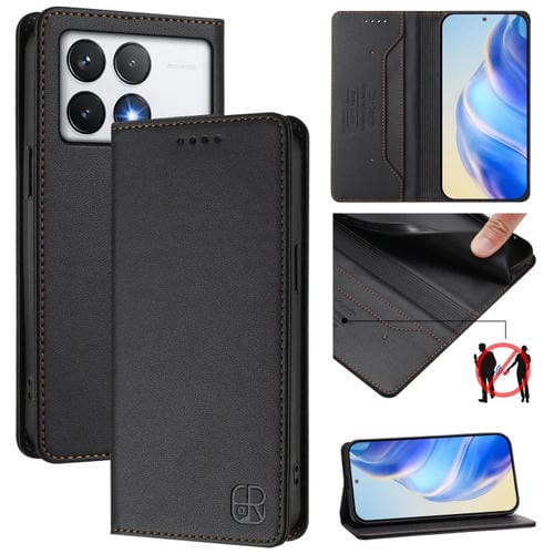 Funda de Cuero con Doble Pliegue y Succión Magnética para Teléfono Xiaomi Poco F6 Pro 5G Rc01 (Negro)