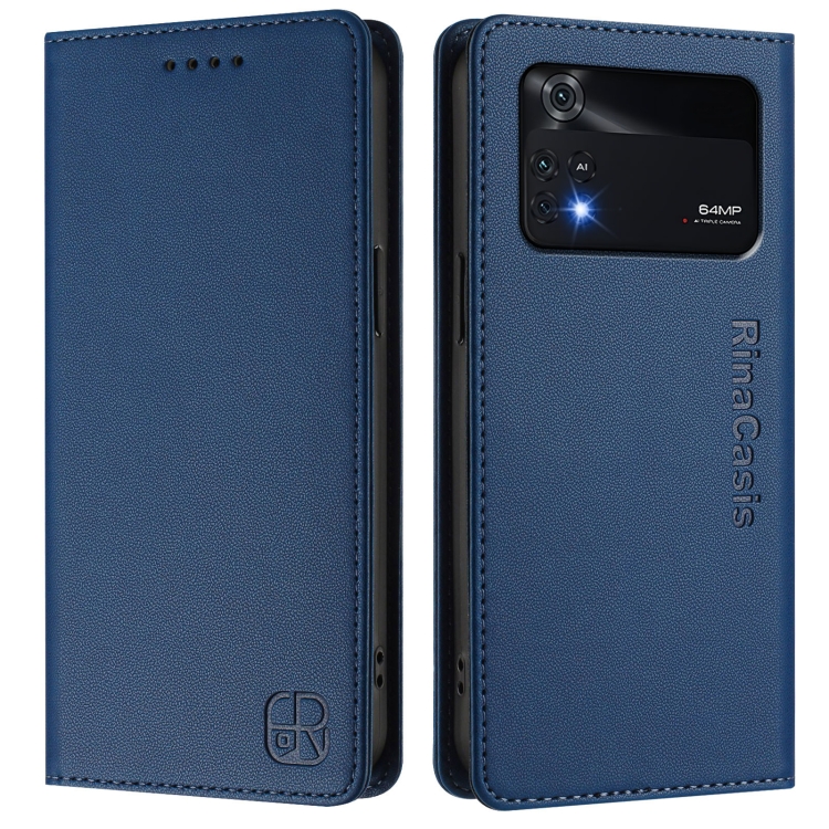 Funda de Cuero con Doble Pliegue y Succión Magnética para Teléfono Xiaomi Poco M4 Pro 4G Rc01 (Azul Oscuro)