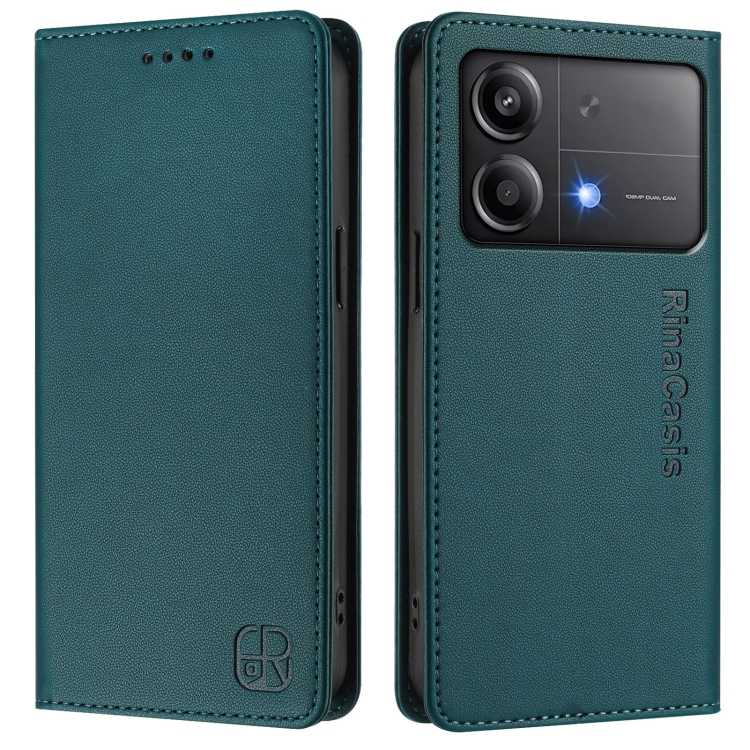 Funda de Cuero con Doble Pliegue y Succión Magnética para Teléfono Xiaomi Poco X6 Neo 5G Rc01 (Verde Oscuro)