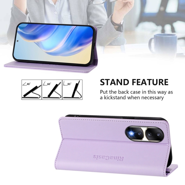Funda de Cuero con Doble Pliegue y Succión Magnética Rfid para Honor 90 Pro Rc01 (Morado Claro)