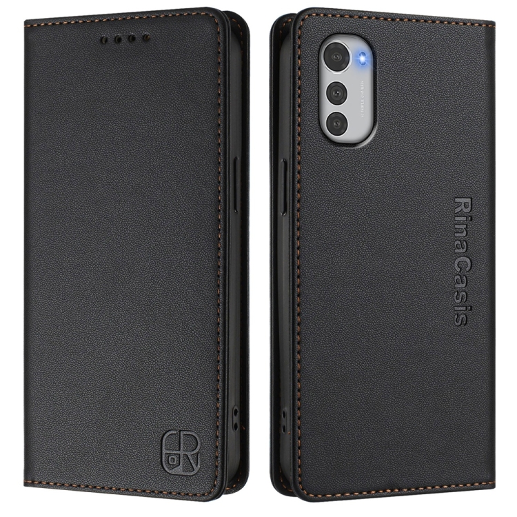 Funda de Cuero con Doble Pliegue y Succión Magnética Rfid para Motorola Moto E32 Global Rc01 (Negro)