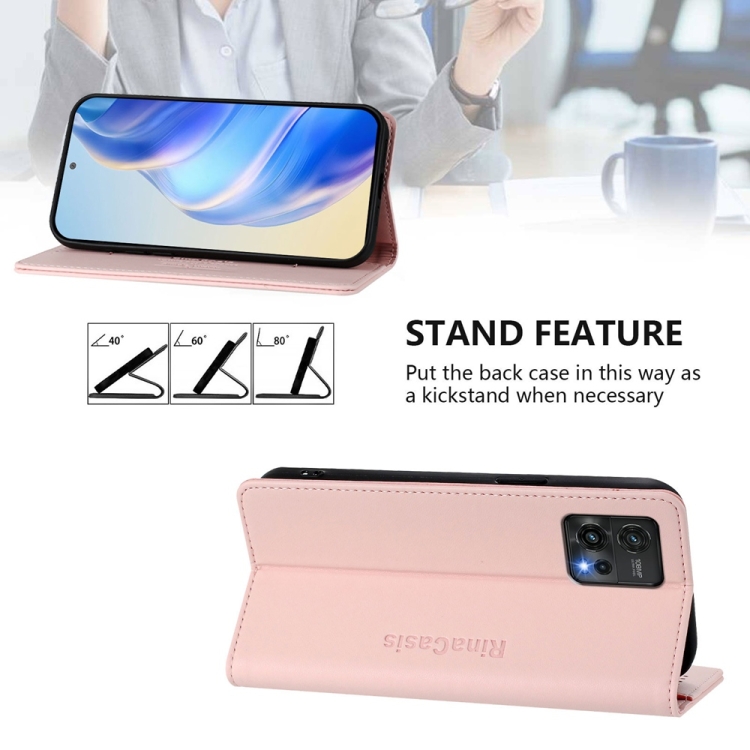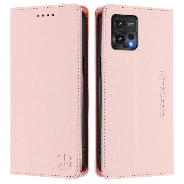 Funda de Cuero con Doble Pliegue y Succión Magnética Rfid para Motorola Moto G72 Rc01 (Rosa)