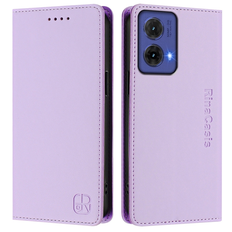 Funda de Cuero con Doble Pliegue y Succión Magnética Rfid para Motorola Moto G85 Rc01 (Morado Claro)