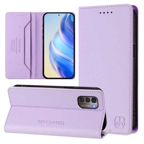 Funda de Cuero con Doble Pliegue y Succión Magnética Rfid para Nokia G11/G21 Rc01 (Morado Claro)