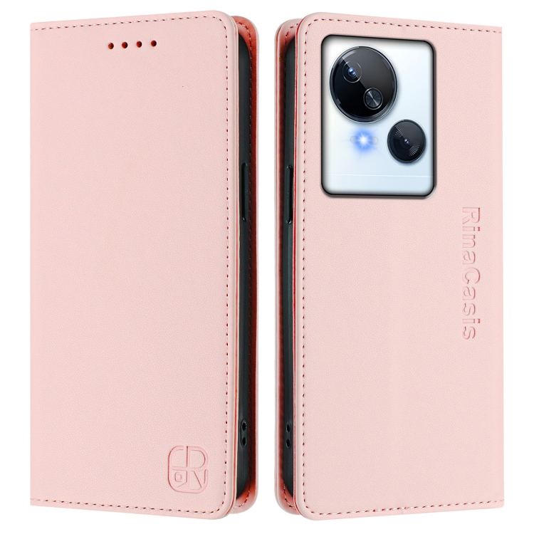 Funda de Cuero con Doble Pliegue y Succión Magnética RFID para Tecno Spark 10 5G Rc01 (Rosa)