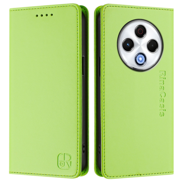 Funda de Cuero Rfid para Tecno Spark 30 4G Rc01 con Doble Pliegue y Succión Magnética (Verde Hierba)