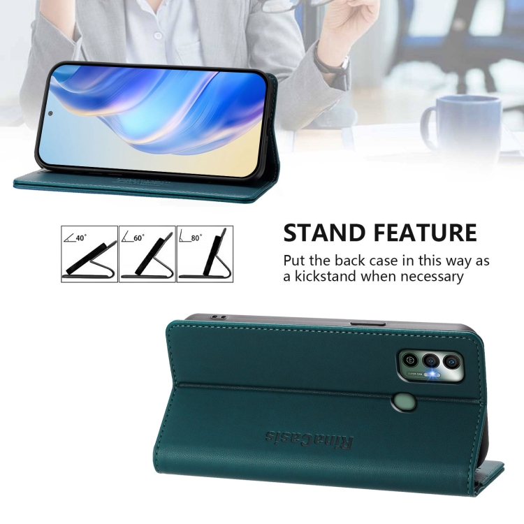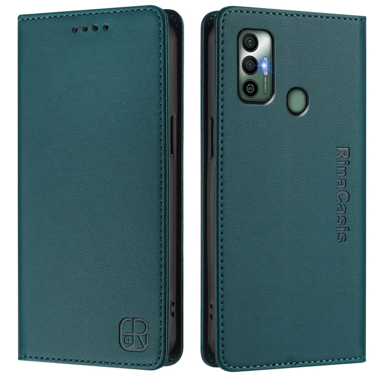 Funda de Cuero Rfid para Tecno Spark 7 / 7T Rc01 con Doble Pliegue y Succión Magnética (Verde Oscuro)