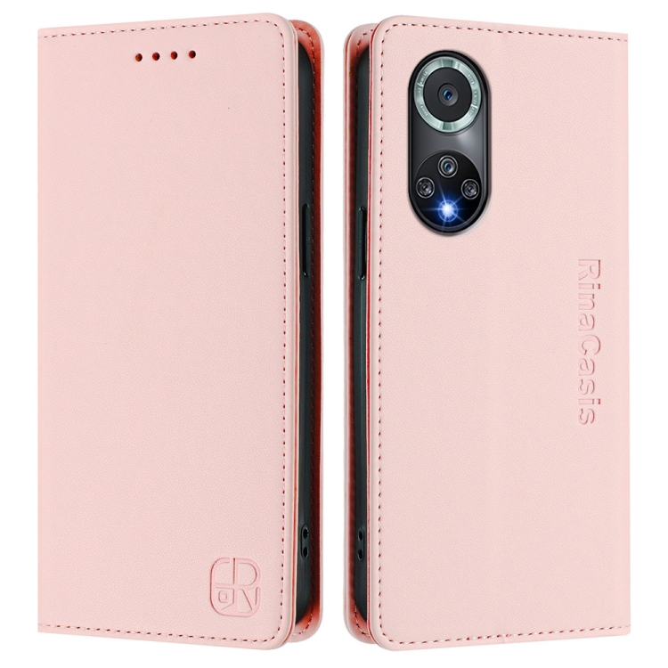 Funda de Cuero con Doble Pliegue y Succión Magnética RFID para Honor 50 Pro Rc01 (Rosa)
