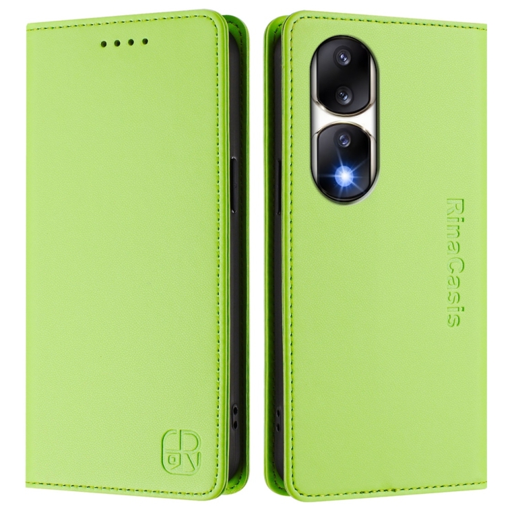 Funda de Cuero Rfid con Doble Pliegue y Succión Magnética para Honor 90 Pro Rc01 (Verde Hierba)
