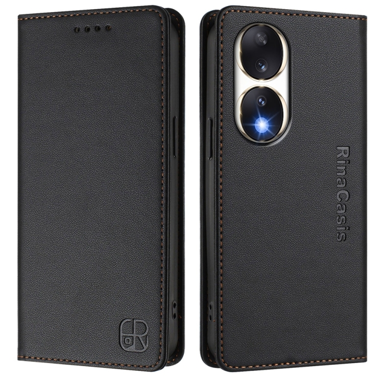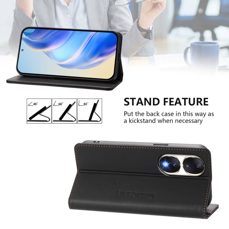 Funda de Cuero Rfid para Honor 90 Rc01 con Doble Pliegue y Succión Magnética (Negra)