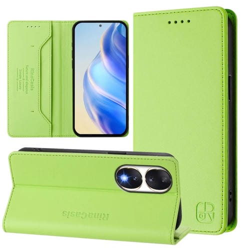 Funda de Cuero con Doble Pliegue y Succión Magnética Rfid para Honor 90 Rc01 (Verde Hierba)