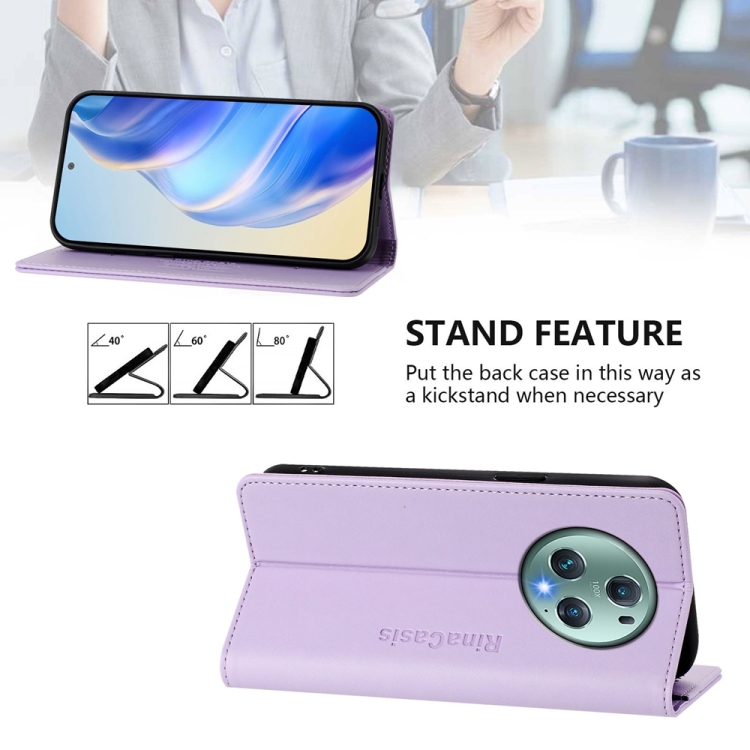 Funda de Cuero Rfid con Doble Pliegue y Succión Magnética para Honor Magic5 Pro Rc01 (Morado Claro)
