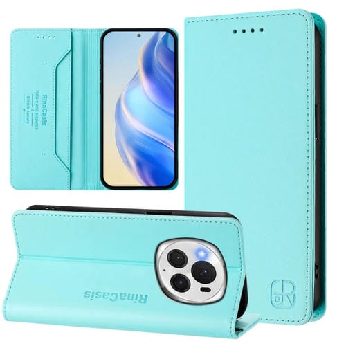 Funda de Cuero Rfid con Doble Pliegue y Succión Magnética para Honor Magic6 Pro Global Rc01 (Verde Menta)