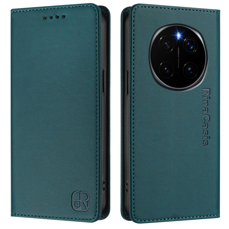 Funda de Cuero Rfid con Doble Pliegue y Succión Magnética para Honor Magic7 Pro Rc01 (Verde Oscuro)