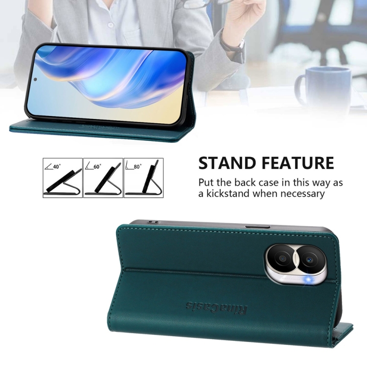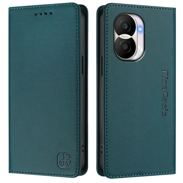 Funda de Cuero Rfid para Honor X40I Rc01 con Doble Pliegue y Succión Magnética (Verde Oscuro)