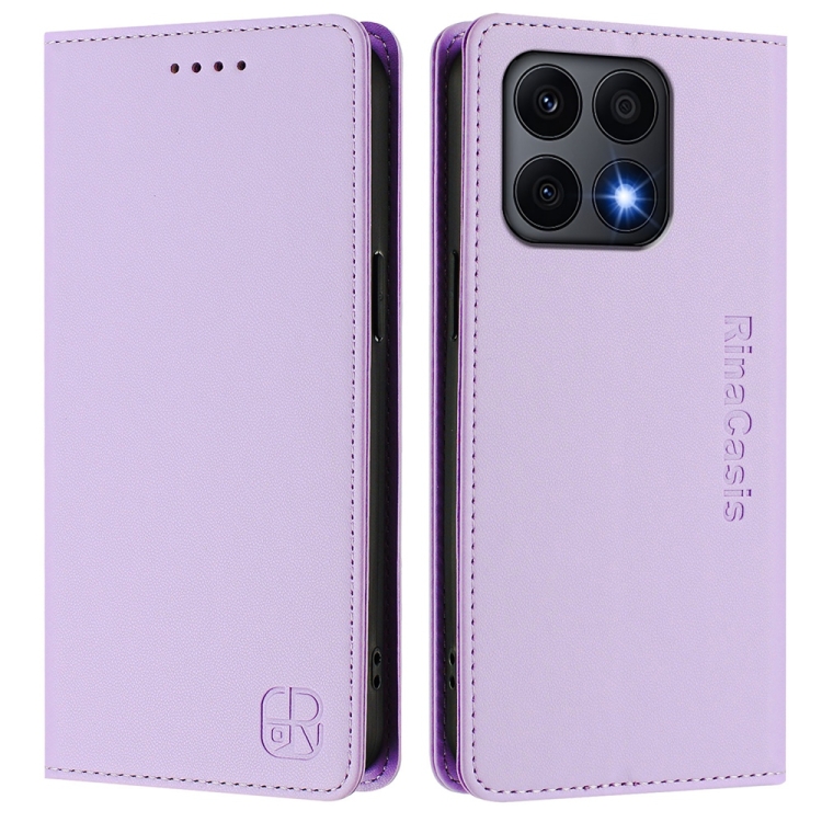 Funda de Cuero Rfid con Doble Pliegue y Succión Magnética para Honor X8A Global Rc01 (Morado Claro)