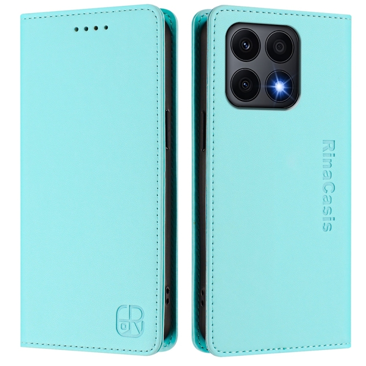 Funda de Cuero Rfid con Doble Pliegue y Succión Magnética para Honor X8A Global Rc01 (Verde Menta)