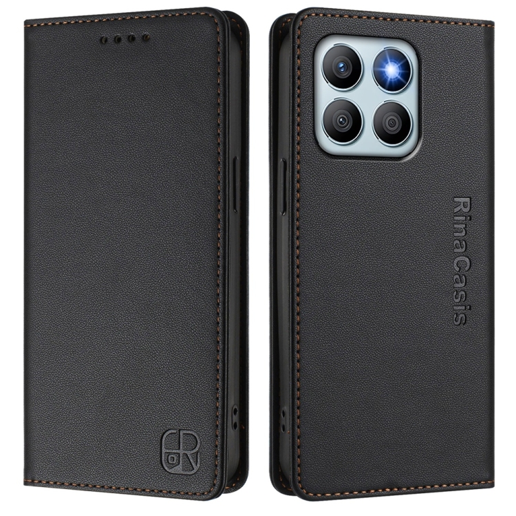 Funda de Cuero Rfid con Doble Pliegue y Succión Magnética para Honor X8B Global Rc01 (Negra)