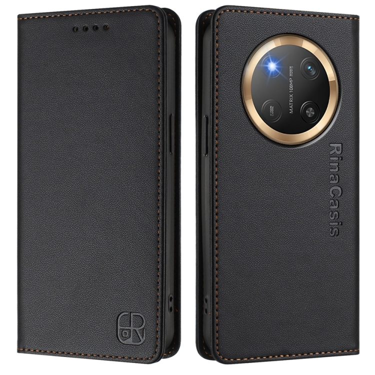 Funda de Cuero Rfid para Honor X9C Global Rc01 con Doble Pliegue y Succión Magnética (Negra)