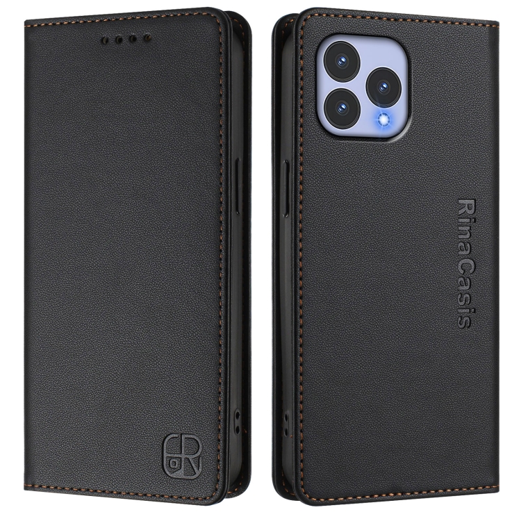 Funda de Cuero con Doble Pliegue y Succión Magnética Rfid para Teléfono Wiko T60/Cubot P80 Rc01 (Negro)